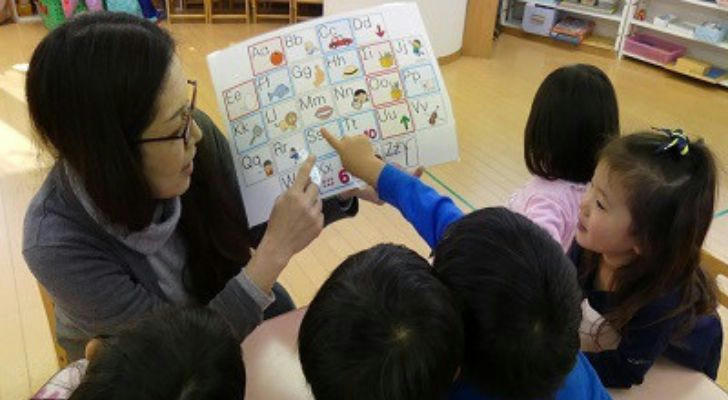 幼稚園の英語教師(Assistant Language Teacher=ALT と呼ばれることもある)は、日本人の先生と一緒に、年齢に合わせたアクティビティを計画・実施する。レッスン内容は、リスニングやスピーキング、基本的な語彙を楽しく学べるよう工夫されている。